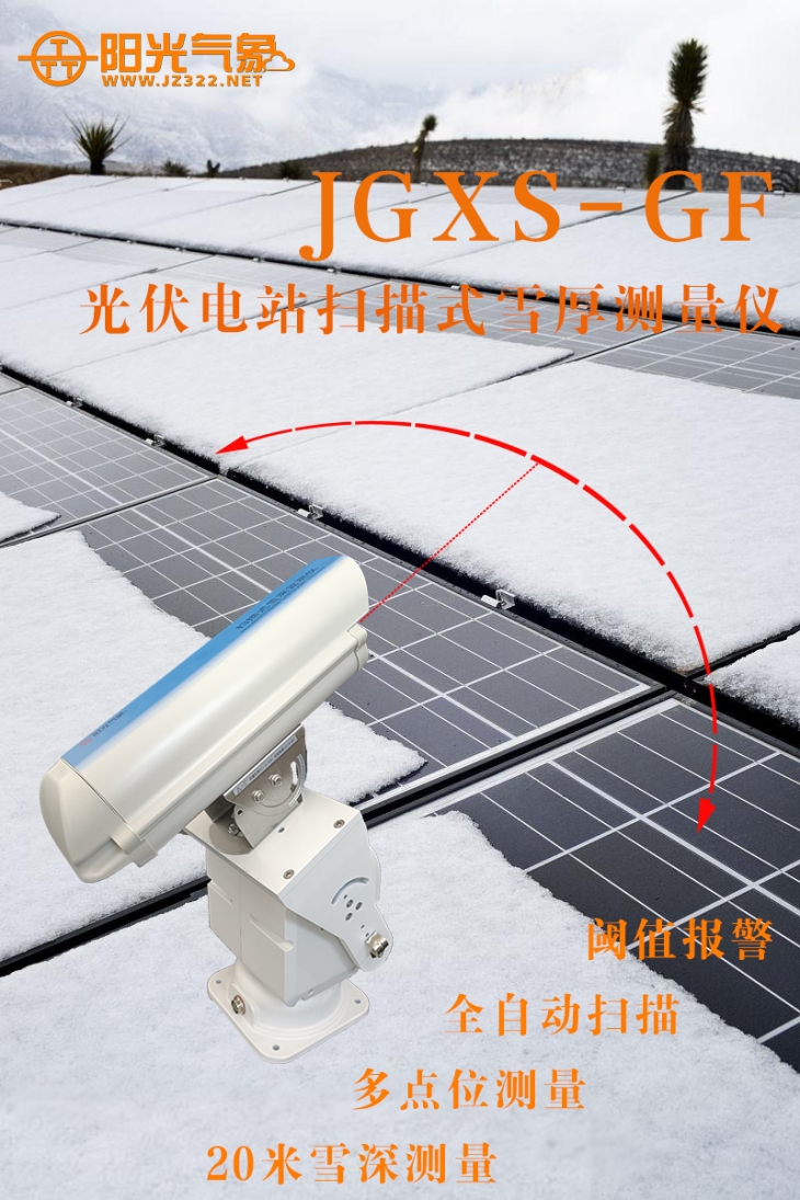 進入冬季,光伏電站如果遇到雪天,光伏板上就會積雪,雪的存在會使太陽光被反射,從而使得光伏板的發(fā)電量受到影響。雪重也會增加光伏組件的承重,可能造成光伏組件的變形或損壞,影響光伏組件的壽命和性能。此外,積雪也會使光伏板表面溫度下降,從而減緩電流的流動速度,造成電流的輸出不穩(wěn)定。因此,雪天對光伏發(fā)電的影響是復(fù)雜的,及時準(zhǔn)確地監(jiān)測光伏組件表面的積雪情況是非常必要的。JGXS-GF光伏電站掃描式雪厚測量儀是我公司新研發(fā)的一款專門針對光伏電站組件表面積雪厚度進行動態(tài)測量的儀器。