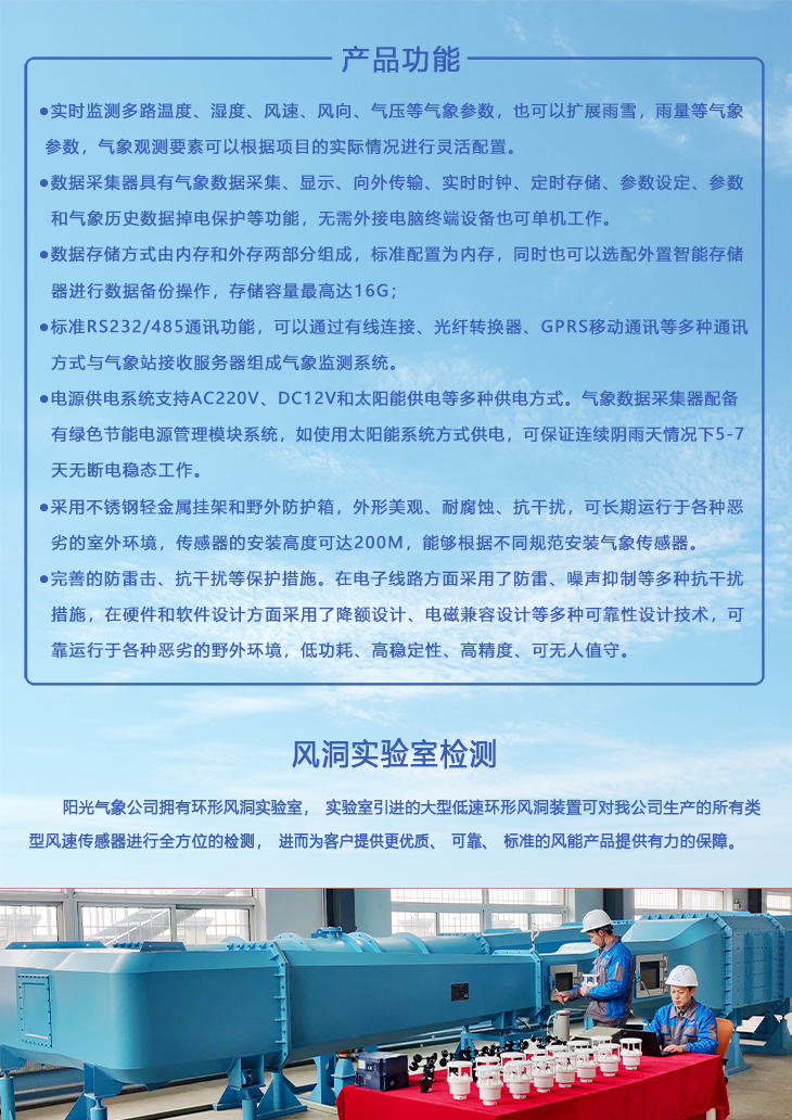 TRM-ZS4型風電場氣象采集系統(tǒng)是風電功率預測系統(tǒng)重要組成部分,主要負責采集氣象預報數(shù)據(jù),包括測風塔梯度風速、風向、溫度、濕度以及氣壓等實時數(shù)據(jù)、并對數(shù)據(jù)進行分析處理和統(tǒng)計,再實時輸出給風功率預測系統(tǒng),為風電場的風電功率預測工作提供可靠數(shù)據(jù)。TRM-ZS4型風電場氣象采集系統(tǒng)由氣象傳感器、微電腦氣象數(shù)據(jù)采集儀、太陽能電源供電系統(tǒng)、全天候防護箱和氣象觀測支架、通訊模塊等部分構成。