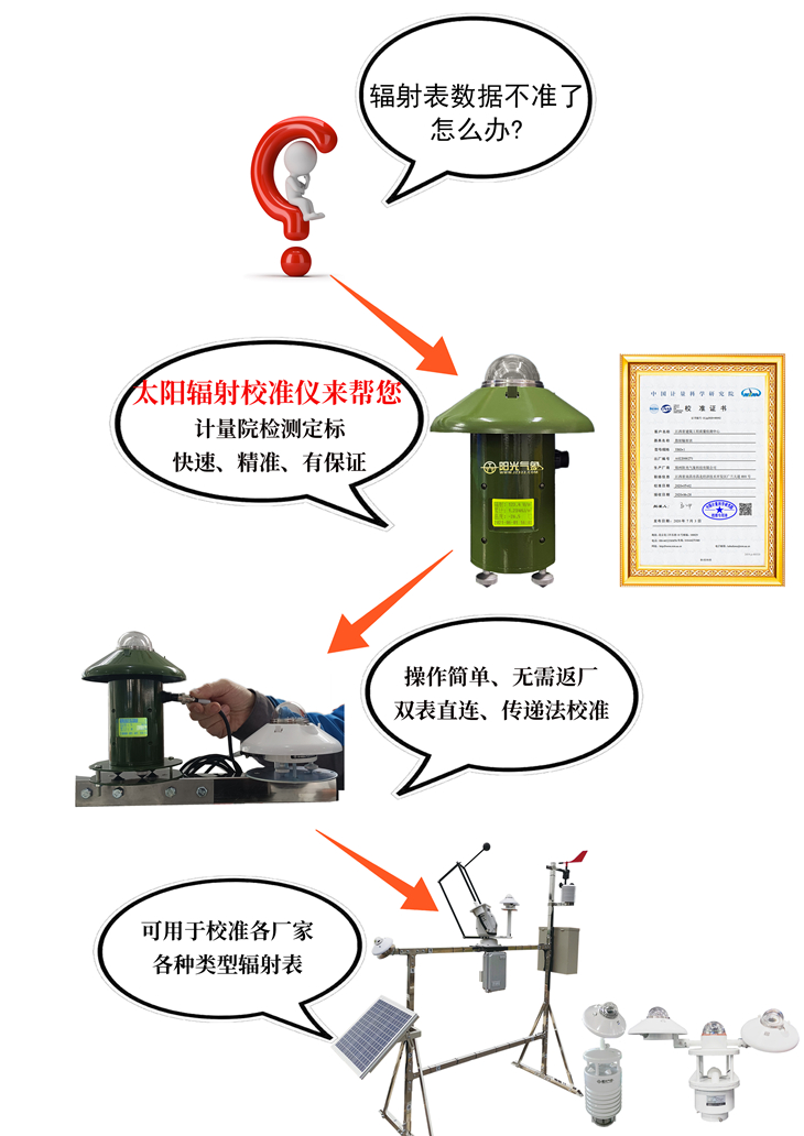 由于天氣狀況直接影響光伏電站的發(fā)電量, 所以光伏電站性能評估的核心參數離不開準確的太陽輻射數據。在光伏電站監(jiān)測系統中太陽輻射傳感器發(fā)揮重要作用, 精確地實測數據和累計數據, 是跟蹤、評估和控制光伏電站性能參數的關鍵。因此太陽輻射傳感器的準確與否至關重要。我公司研發(fā)生產的TBQ-2WX太陽輻射校準儀,就是專門用來校準安裝在現場的太陽輻射傳感器的,當現場的太陽輻射傳感器數值出現偏差時,由于空間與時間的限制,很多場站不能及時拆卸返廠,由此TBQ-2WX太陽輻射校準儀應運而生。校準儀便攜一體化設計, 可在多個場站間循環(huán)往復使用。是光伏電站現場運維的必備之品。